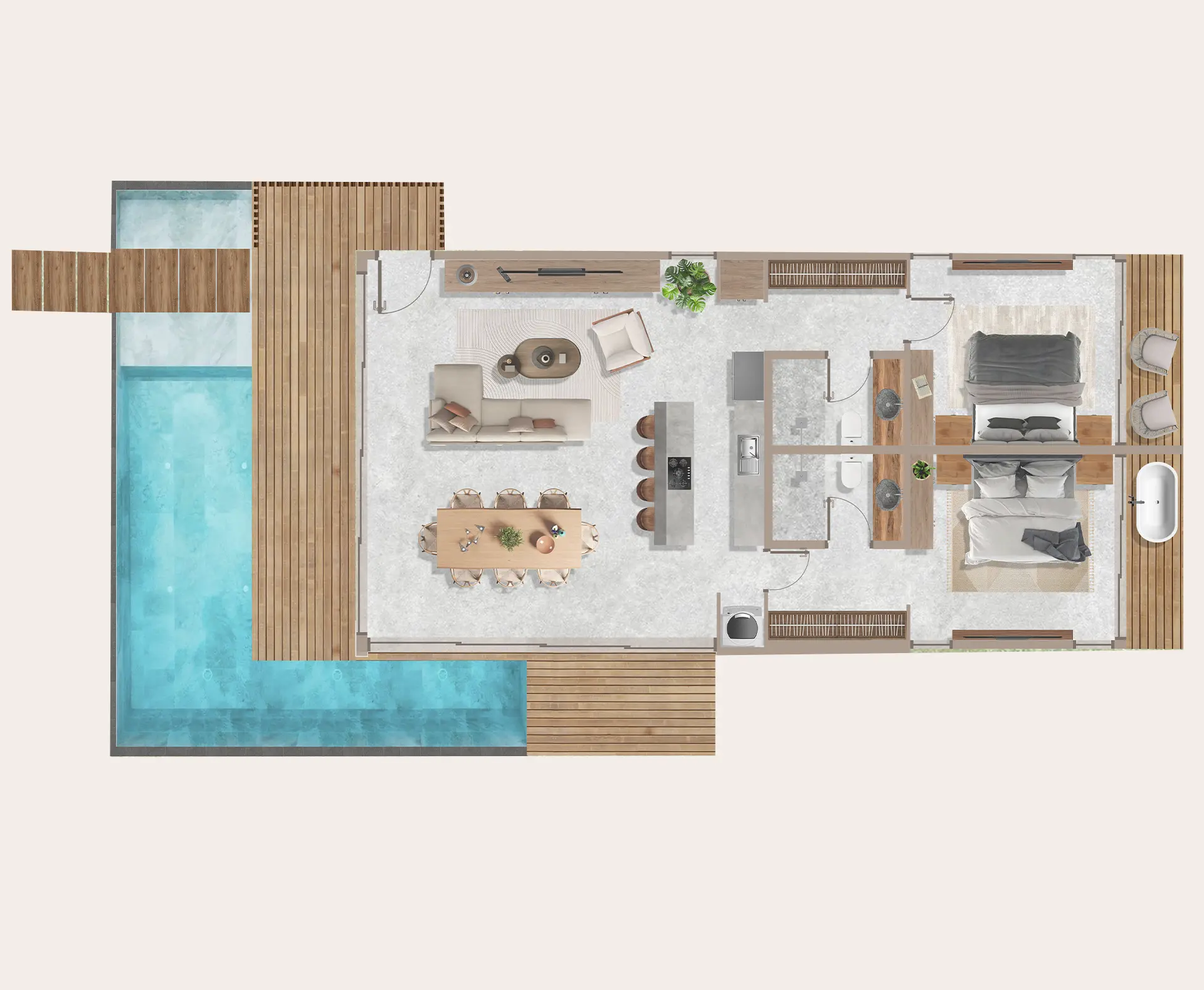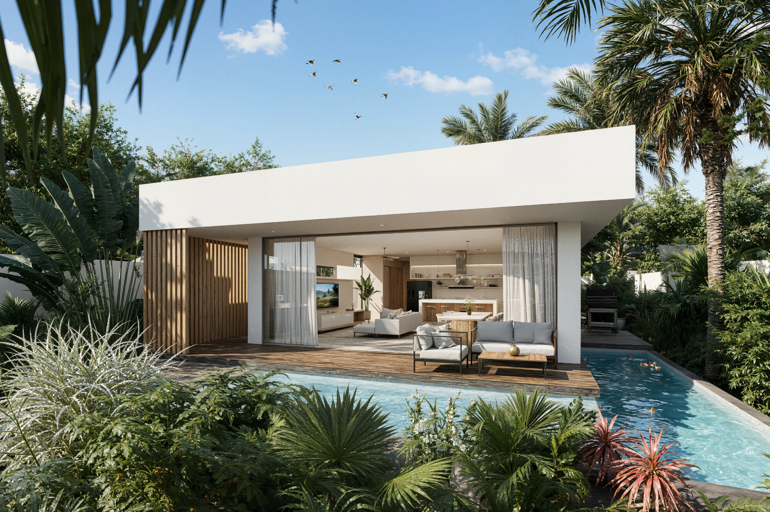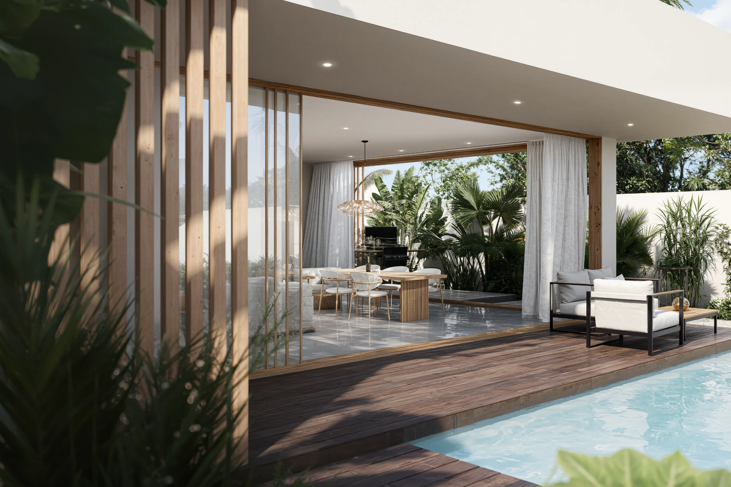 Disfruta de tu propia alberca en cualquier momento, a solo unos pasos de tu sala.